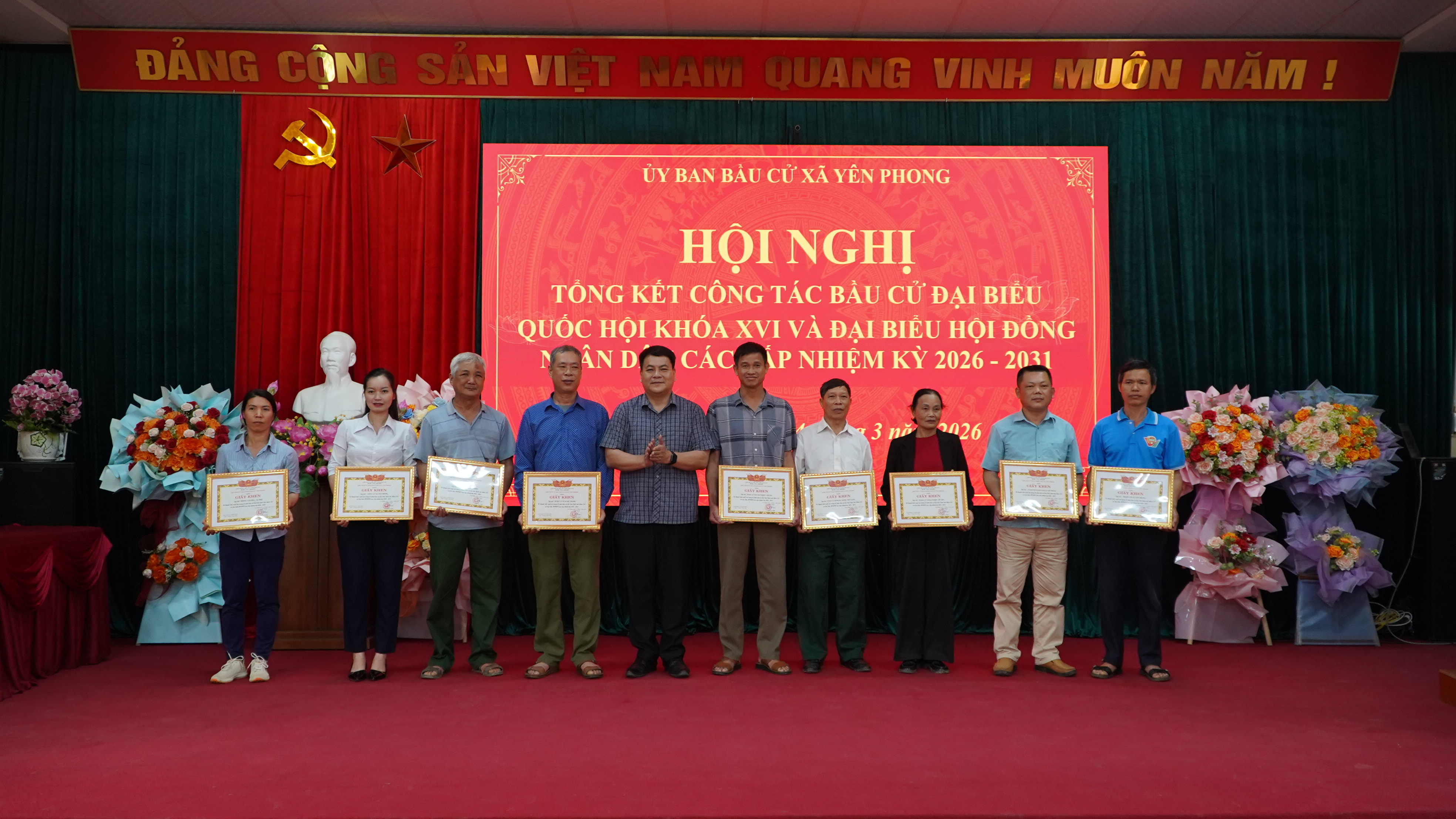 Chiều ngày 24/3/2026, Ủy ban bầu cử (UBBC) xã Yên Phong đã tổ chức Hội nghị tổng kết nhằm đánh giá toàn diện công tác bầu cử đại biểu Quốc hội khóa XVI và đại biểu Hội đồng nhân dân các cấp, nhiệm kỳ 2026-2031 trên địa bàn xã.
